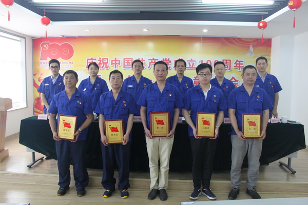 會議分為先進表彰、入黨宣誓、紀念大會三階段進行。公司黨委委員、副總經理陳明歧宣讀了《關于表彰公司2020年度優秀黨員、優秀黨務工作者和先進基層黨組織的表彰決定》,隨后,黨委委員們向獲得表彰的先進集體和個人頒發了獎牌,參會黨員熱烈鼓掌表示祝賀。