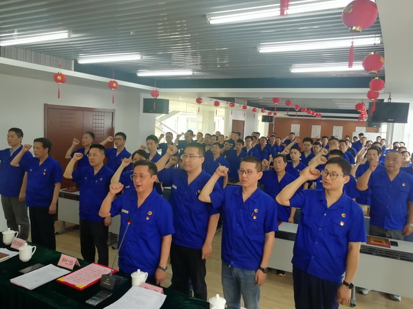 表彰結束后,公司黨委書記、董事長、總經理尹仁華帶領今年新入黨的3位新黨員進行入黨宣誓,全體黨員也集體起立面向鮮紅的黨旗重溫了入黨誓詞。